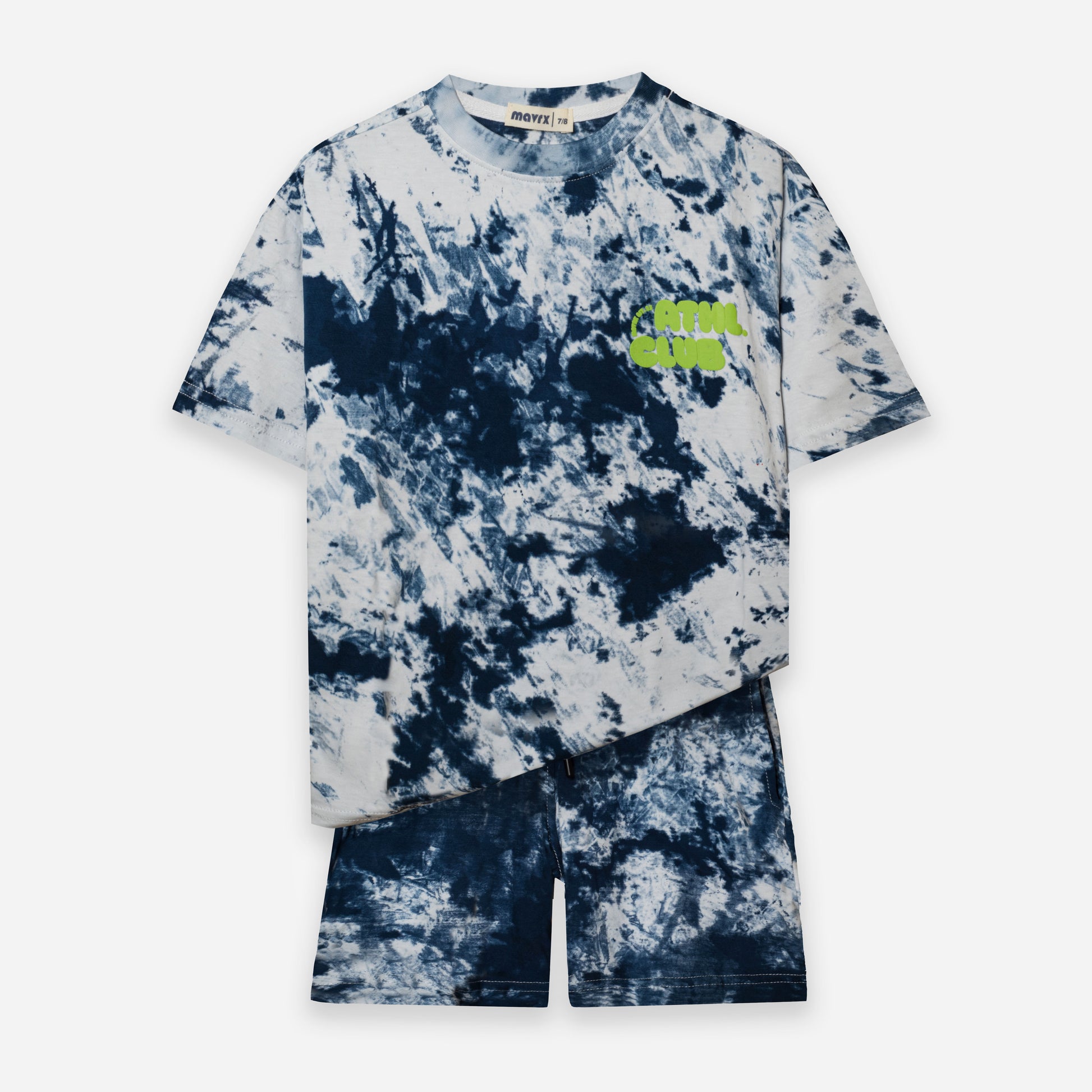 Tie-Dye Over size Round neck T-shirt with short sleeves. & Shorts featuring an elastic waistband and front drawstring appliqués.